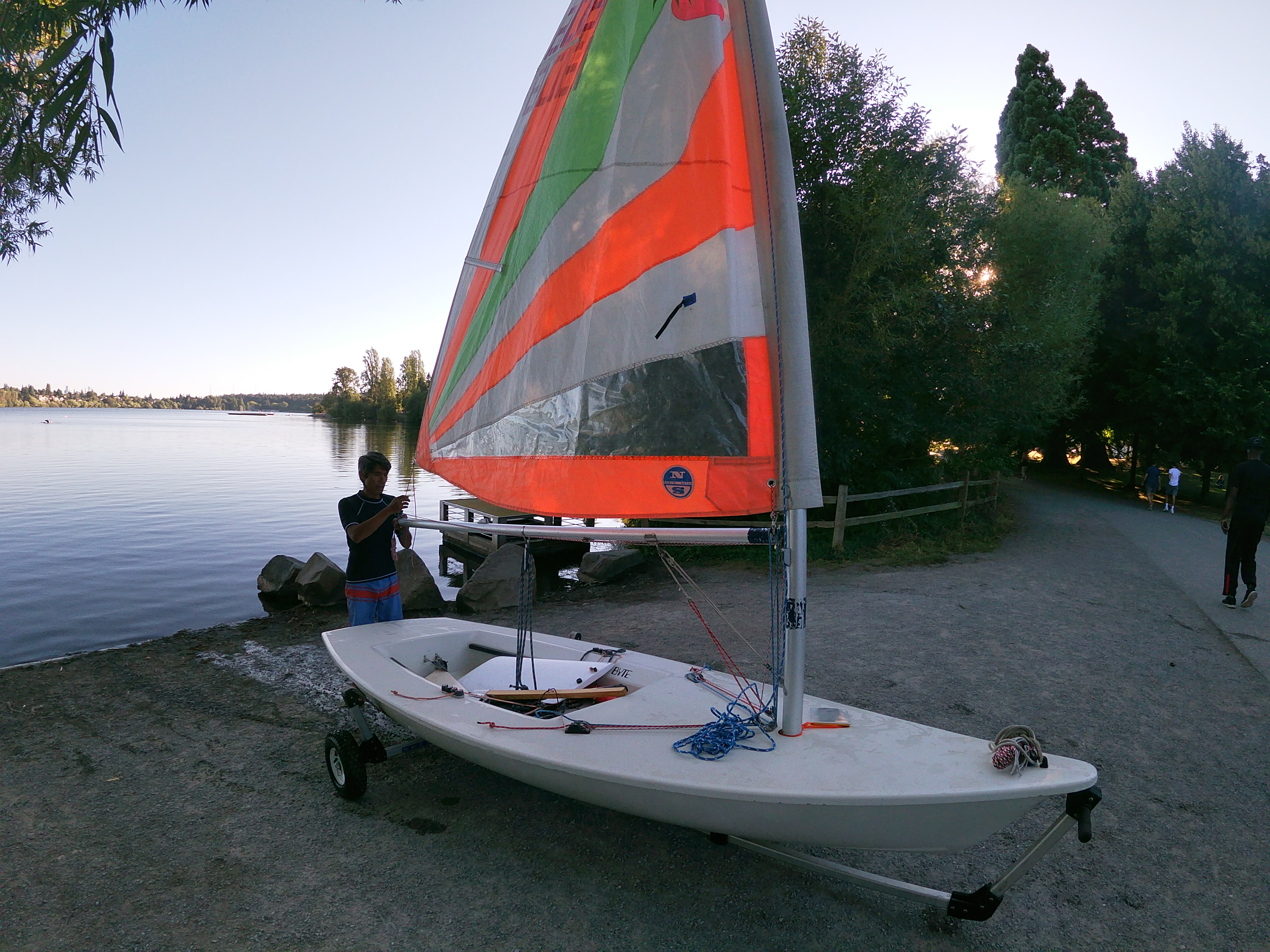 A smaller version of the Laser, also designed by Ian Bruce, is a friendlier version of the Laser. Built for sailors 100 to 150 lbs, hoisted main, split controls, and a traveler below the main sheet, which makes it ideal to sail with a child. Most parts are Laser standard (blades, spars). The boat is well cared for and ready to sail.